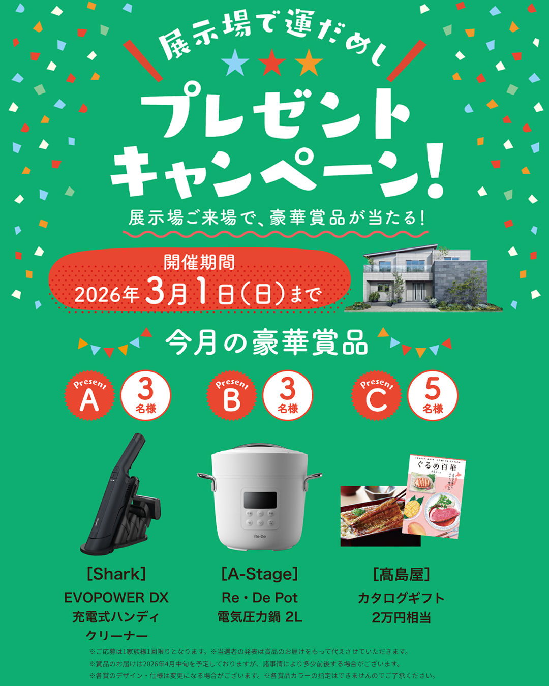 展示場ご来場で豪華賞品が当たる!
